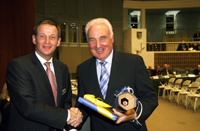 Otto Birkmann (rechts) gehört seit 20 Jahren zum Kreistag: Landrat Peter Ottmann (links) gratuliert dem Kempener.