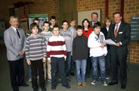 Landrat Peter Ottmann (rechts) und Schuldezernent Professor Leo Peters (3. von rechts) gratulierten den erfolgreichen Teilnehmern der Mathematik-Olympiade. Regionalkoordinator Dr. Hans-Reinhard Biock (links) freute sich über die Erfolge der Schüler aus dem Kreis Viersen.