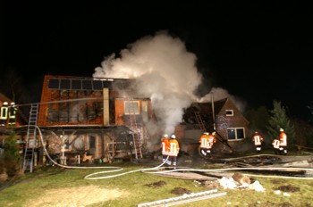 In Berumbur stand der Dachstuhl eines Einfamilienhauses samt Anbau in Vollbrand. Die Feuerwehr Norden rückte mit dem Einsatzleitwagen 2 des Landkreises Aurich sowie mit dem Gerätewagen Atemschutz aus, ebenfalls halfen sie den hohen Bedarf an Atemschutzgeräteträgern zu decken.
