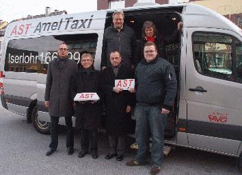 10 Jahre AnrufSammelTaxi in Iserlohn Durch die Einführung eines einfachen Einheitstarifes für das gesamte Stadtgebiet Iserlohn wurde das Angebot für viele Nutzer billiger und leichter verständlich. So ist es zum Beispiel möglich, für einen Fahrpreis von vier Euro aus der Iserlohner Innenstadt bis nach Rheinen gefahren zu werden. Für Personen unter zwanzig Jahren und Inhaber von Busfahrkarten gilt außerdem ein Sondertarif. Sie zahlen für eine solche Fahrt nur zwei Euro und fünfzig Cent. Im Sommer letzten Jahres musste der AST-Verkehr durch die Insolvenz des beauftragten Taxiunternehmers kurzzeitig pausieren. Mit dem Reiseservice Wessel aus Hemer konnte allerdings schnell ein Unternehmen gefunden werden, das den AST-Betrieb im Oktober 2008 erfolgreich wieder aufgenommen hat. Allein im vergangenen Monat Januar nutzten mehr als 700 Fahrgäste die auch optisch neu gestalteten AST-Fahrzeuge. Stadt Iserlohn und MVG rechnen damit, dass dieser positive Trend anhält. In Ergänzung zum Buslinienverkehr verkehrt das AST nach telefonischer Vorbestellung unter der eigens eingerichteten AST-Rufnummer 02374/166699 kostengünstig von allen Bushaltestellen im Stadtgebiet Iserlohn bis zu dem vom Fahrgast gewünschten Fahrtziel ("Haustürbedienung"). In den Nächten Freitag / Samstag und Samstag / Sonntag steht das AST an der Abfahrtstelle "Ohl" auch ohne vorherige Anmeldung - jeweils zur vollen Stunde - für Besucher der Innenstadt bereit. Dieses Angebot wird insbesondere von Jugendlichen häufig genutzt. Weitere Angebote sind Fahrten von und zum Bahnhof Schwerte mit Anschluss an den Dortmunder Nachtexpress sowie ein Service für Besucher des Parktheaters, die nach Veranstaltungsende nach Haus gebracht werden möchten. Weitere ausführliche Infos rund ums AnrufSammelTaxi enthält ein Faltblatt, das in den Rathäusern, bei der Stadtinformation und bei den Bürgerservice-Stellen ausliegt. Alle Informationen gibt es auch auf den Internetseiten der Stadt Iserlohn unter www.iserlohn.de (Stichwort “Wirtschaft & Verkehr”) und der MVG unter www.mvg-online.de. |
