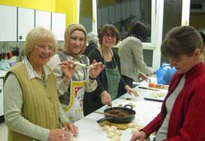 Kartoffel trifft Knoblauch - unter diesem Motto stand die interkulturelle Küchenparty im Rahmen der Frauenkulturtage 2009. Rund 30 Frauen unterschiedlicher Nationalitäten trafen sich Mitte März in der Großküche der FBS, um gemeinsam landestypische Rezepte auszuprobieren.
