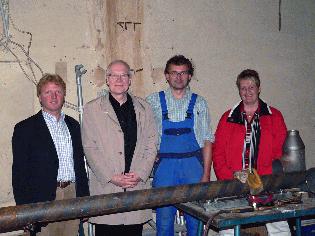 Pellets auf dem Vormarsch – drei Grundschulen erhalten neue Heizungsanlage Helsa/Fuldatal/Schauenburg. „Wenn Heizungsanlagen der Schulen im Kreis erneuert werden müssen, setzen wir weiter auf Pellets, wenn die Rahmenbedingungen stimmen“, informiert Bernd Kleibl, Leiter des Fachbereichs Bauen und Umwelt des Landkreises Kassel. Mit den laufenden Pelletanlagen wie zum Beispiel an der Elbetalschule in Naumburg habe man „gute Erfahrungen“ gemacht. Aktuell stehe der Einbau weiterer Pelletanlagen an drei Grundschulen im Kreis an. Die entsprechenden Arbeiten laufen bereits an der Eschenwaldschule in Helsa-Eschenstruth. „Heizkessel, Verteiler- und Regelungsanlage stammen hier aus dem Jahr 1982 und sind in die Jahre gekommen“, berichtet Kleibl, der zurzeit die Schulbaumaßnahmen im Rahmen der Konjunkturprogramme von Bund und Land für den Kreis koordiniert. Man habe sich daher entschieden, die alte Ölheizung durch eine moderne Pelletanlage zu ersetzen. Für rund 207.000 Euro aus dem Zukunftsinvestitionsprogramm des Bundes baut die Firma Wiegand aus Trendelburg einen 220 Kilowatt Pelletkessel mit Zubehör sowie eine neue Verteiler- und Regelanlage und 209 Meter neue Stahlrohrleitungen ein. Kleibl: „Ganz ohne Öl geht es auch in Zukunft nicht – für die Spitzenlast wird noch ein Ölheizkessel mit 80 Kilowatt Leistung benötigt“. Nicht mehr gebraucht werde allerdings der große Öllagerraum. Hier entsteht jetzt das Pelletlager. Die neue Heizanlage ist nicht die einzige Baumaßnahme an der Eschenstruther Grundschule. „Die Toilettenanlagen für die Schüler werden ebenfalls mit Mitteln des Zukunftsinvestitionsprogramms des Bundes saniert“, erläutert der Fachbereichsleiter. Auch dieser Auftrag konnte in der Region bleiben – er ging an die Firma Schaumburg in Wolfhagen. Für weitere Baumaßnahmen in der Eschenwaldschule wurde das Architekturbüro Scholz aus Helsa vom Kreis beauftragt. So sind unter anderem der Umbau der restlichen Toilettenanlagen, der Austausch von Bodenbelägen, Verbesserungen im Brandschutz sowie eine Sonnenschutzanlage an den Fenstern geplant. Die beiden weiteren geplanten Pelletanlagen an der Grundschule in Fuldatal-Ihringshausen und der Grundschule in Schauenburg-Hoof werden aus originären Haushaltsmitteln des Landkreises finanziert, erläutert Uwe Schenk, zuständiger Fachdienstleiter im Fachbereichs Schulen und Bauwesen. Für beide Anlagen erhalte der Kreis einen Zuschuss aus dem Landesprogramm zur Förderung der Verwendung nachwachsender Rohstoffe, das von der LTH – Bank für Infrastruktur verwaltet wird. Schenk: „Beide Anlagen bedeuten einen Investitionsumfang von rund 350.000 Euro – wir müssen aber noch das Ergebnis der laufenden Ausschreibung abwarten“. Die Anlage in Ihringshausen wird vom Fachbüro Bakowies aus Körle (Schwalm-Eder-Kreis) geplant, die in Hoof vom Fachbüro SUN-TRIEB aus Naumburg, in Eschenstruth hatte das Büro Idee-Seeger aus Borken die Planung übernommen. „In Ihringshausen können wir den ehemaligen Kohlenkeller nutzen, in dem die komplette Kesselanlage, das Pelletlager, der Pufferspeicher und der Gasspitzenlastkessel untergebracht werden können“, erläutert der Fachdienstleiter. In Hoof werde das Pelletlager in einem Nebenraum des vorhandenen Heizungskellers untergebracht. Beide neuen Pelletanlagen ersetzen vorhandene Gasheizanlagen. Die beauftragten Planungsbüros haben im Vorfeld der Entscheidung für eine Umrüstung auf Pellets die Wirtschaftlichkeit der Maßnahme geprüft. Schenk: „Diese Prüfung erfolgt grundsätzlich – entweder über beauftragte Ingenieurbüros oder über die Energieagentur Energie 2000 in Wolfhagen“. Der Kreis baue nur Holzheizungen, wenn sich das letztlich auch rechnet, so Schenk abschließend. Hintergrund: Pelletanlagen werden kleinen Holzpellets, die aus Spänen und Sägemehl gepresst sind, betrieben. Die Anlagen sind in Betrieb und Wartung ähnlich wie Öl- oder Gasheizungen. Um keine Betriebsstörungen zu vermeiden, kommt es auf die Qualität der eingesetzten Pellets an. Pelletheizungen haben den Umweltvorteil einer günstigen Klimabilanz: Sie sind weitgehend CO²-neutral, da die Menge an CO², die bei der Verbrennung freigesetzt wird, der Menge entspricht, die beim Wachstum des genutzten Holzes gebunden wurde. Würde das Holz verrotten würde die gleiche Menge CO² wie beim Verbrennen freigesetzt. Die Preise für Pellets variieren von saisonal und regional. Im Mai 2009 lag der Preis im bundesweiten Durchschnitt bei rund 4 Cent pro Kilowattstunde (zum Vergleich: Heizöl 5 Cent/kwh, Erdgas 7,5 Cent/kwh). Der Landkreis Kassel betreibt zurzeit Pelletanlagen im Wasserschloss Wülmersen, in der Jugendburg und Sportbildungsstätte Sensenstein, an der Erich-Kästner-Schule in Baunatal, der Wilhelm-Leuschner-Schule in Niestetal und der Elbetalschule in Naumburg. In die Eschenwaldschule in Helsa-Eschenstruth gehen die Kinder der Helsaer Ortsteile Eschenstruth, Waldhof und St. Ottilien. Seit dem August 1993 gibt es ein Betreuungsangebot an der Schule. Ab der 5. Klasse besuchen die Schüler der Grundschule überwiegend die Integrierte Gesamtschule in Kaufungen und zum Teil die Freiherr-vom-Stein-Schule in Hessisch-Lichtenau (Werra-Meißner-Kreis). Im zurückliegenden Schuljahr hatte die Schule 74 Schüler – im neuen Schuljahr bleiben die Schülerzahlen nach den vorliegenden Anmeldungen stabil. Pressekontakt: Pressestelle LANDKREIS KASSEL, Harald Kühlborn Zu dieser Meldung können wir Ihnen folgendes Medium anbieten: Heizung Helsa Auf dem Foto im ehemaligen Ölheizungskeller begutachten von links nach rechts Christian Seeger (Büro Idee-Seeger), Bernd Kleibl (Landkreis Kassel), Frank Wiegand (Heizungsbauer aus Trendelburg) und Elke Hübel (Landkreis Kassel) die vorbereitenden Arbeiten für den Einbau der neuen Pelletheizung.
