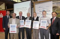 Landrat Peter Ottmann (links) und Ludger Gooßens, Vorstandvorsitzender der Sparasse Krefeld, (rechts) mit den Preisträgern des Bürgerpreises 2009: Herbert Hubatsch, Heinz Tüffers, Heinrich Maibaum, Kurt Lemke und Ernst Holthausen (von links).