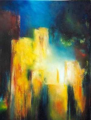 Reflexionen, so nennt die Hertener Künstlerin Eva Ernst ihre Bilderserie, die vom 29. Juli bis 20. August 2000 im Südflügel des Hertener Schlosses zu sehen ist. Eva Ernst hält in ihren Bildern Alltagsbegegnungen fest. Manche flüchtigen Begegnungen wecken starke Gefühle. Dies kann ein Moment sein, in dem sich das Licht in besonderer Form bricht, ein Lied, ein Gedicht, was nicht mehr los läßt und das dringend ein Bedürfnis erweckt, dieses Empfinden festzuhalten und in die Bildersprache umzusetzen.
