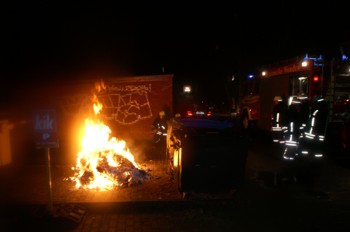Containerbrand auf dem Parkplatz der Deutschen Bank Am Dienstagabend rückte die Freiwillige Feuerwehr Norden zu einem gemeldeten Containerbrand in die Jerusalems Lohne, auf dem Parkplatz der Deutschen Bank, aus. Gegen 22.40 Uhr hatte ein Anwohner der Osterstraße den Brand entdeckt. Als die Feuerwehr mit dem Tanklöschfahrzeug die Einsatzstelle erreichte, brannte ein Rollcontainer aus Kunststoff mit Hausmüll. Zwei weitere Container wurden bei dem Brand ebenfalls beschädigt. Die acht Feuerwehrleute hatten das Feuer in wenigen Minuten gelöscht. Ebenfalls vor Ort war eine Streifenwagenbesatzung der Norder Polizei.