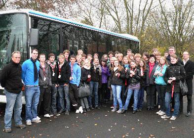 30 Schüler zu Fahrzeugbegleitern ausgebildet – Flächendeckende Versorgung angestrebt Grebenstein. Das Beste kam zum Schluss: 30 neue Fahrzeugbegleiter der Heinrich-Grupe-Schule in Grebenstein erhielten ihre neuen Fahrbegleiter-Ausweise nach dem erfolgreichen Abschluss der Ausbildung. „Das Engagement der Fahrzeugbegleiter ist beispielhaft und trägt sicherlich dazu bei, dass die Fahrt von und zur Schule für alle stressfreier wird“, unterstrich Kreispressesprecher Harald Kühlborn den Einsatz der Schüler. Das Fahrzeugbegleiter-Projekt solle Gewalt und Vandalismus im Vorfeld verhindern, statt im nachhinein Schäden zu beheben. Deshalb unterstütze der Kreis die Ausbildung von Fahrzeugbegleitern an den Schulen im Kreis auch finanziell. Die pro Lehrgang entstehenden Kosten von rund 4.000 Euro übernimmt der Landkreis – die Organisation der Ausbildung übernimmt das jeweilige für die Schule zuständige Verkehrsunternehmen. In Grebenstein ist dies der Regionalverkehr Kurhessen (RKH). „Ich bin froh, dass wir Fahrzeugbegleiter an der Schule haben, da sich ihre Anwesenheit positiv in den Bussen bemerkbar machen wird“, ergänzte Peter Irmer, der das Busbegleiter-Projekt zusammen mit Margot Träger, Sascha Lackner und Schulsozialarbeiterin Nina Schindewolf an der Heinrich-Grupe-Schule koordiniert. Irmer lobte die gute und abwechslungsreiche Ausbildung, die den teilnehmenden Schülern auch über die reine Ausbildung zum Fahrzeugbegleiter „viel gebracht“ habe. Der Übergabe der Zertifikate über die erfolgreich absolvierte Ausbildung war ein Lehrgang vorausgegangen, in dem die Schüler von Trainern der RKH intensiv geschult wurden. „Der Lehrgang schafft die Voraussetzungen dafür, dass die Schüler für ihre neue Aufgabe als Fahrzeugbegleiter fit gemacht werden“, informiert RKH-Trainer Günter Volland. Während des Lehrgangs wurden die neuen Fahrzeugbegleiter in Deeskalation und Konfliktbewältigung geschult. Außerdem wurden den Teilnehmern Strategien zum neutralen Verhalten sowie Kommunikationstechniken und Körpersprache näher gebracht. „Wir streben an, dass zukünftig Fahrzeugbegleiter an allen Gesamtschulen im Kreis tätig sind“, kündigt Kühlborn an. Der Landkreis werde die dafür notwendigen Schulungsmittel zur Verfügung stellen. Außer an der Heinrich-Grupe-Schule gibt es ausgebildete Fahrzeugbegleiter auch an der Erich-Kästner-Schule in Baunatal, der Söhre-Schule in Lohfelden, der Freiherr-vom-Stein-Schule in Immenhausen, der Gesamtschule Kaufungen, der Christine-Brückner-Schule in Bad Emstal, der Marie-Durand-Schule in Bad Karlshafen, der Gesamtschule Fuldatal und der Elisabeth-Selbert-Schule in Zierenberg. Pressekontakt: Pressestelle LANDKREIS KASSEL, Harald Kühlborn Zu dieser Meldung können wir Ihnen folgendes Medium anbieten: Busbegleiter Grebenstein Auf dem Foto sieht man eine Busladung Busbegleiter plus Trainer und Lehrer.