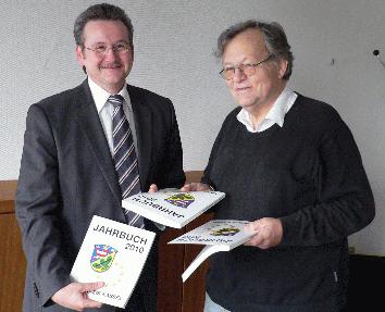 Kreisjahrbuch 2010 erschienen – Viele Informationen aus der Region Kreis Kassel. Das Kreisjahrbuch 2010 ist ab sofort im Buchhandel, bei den Kommunen im Kreis und bei der Landkreisverwaltung erhältlich. „Die Jahrbuchredaktion hat wieder eine informative und spannende Mischung aus aktuellem und historischen Themen zusammengestellt,“ würdigte Landrat Uwe Schmidt die aktuelle Jahrbuchausgabe. Im 140 Seiten starken reich bebilderten redaktionellen Teil warten 34 Beiträge mit einer großen Fülle von Informationen zu spannenden Themen oder Personen aus Geschichte und Gegenwart des Kreises auf die Leser. Im aktuellen Jahrbuch sind zwei Texte von Ex-Landrat Dr. Udo Schlitzberger vertreten. Dr. Schlitzberger beschäftigt sich mit eisenzeitlichen Spuren im Habichtswald und zieht eine Bilanz der Abfallpolitik im Landkreis Kassel. Ebenfalls mit archäologischen Fragestellungen beschäftigt sich Patrick Mertl mit einem aktuellen Bericht über die ersten Ergebnisse eines Forschungsvorhabens der Johannes-Gutenberg-Universität Mainz am Hohen Dörnberg. Als Gast aus Ostwestfalen beleuchtet Horst Braukmann die Bedeutung alter Heer- und Handelsstraßen zwischen Westfalen und Nordhessen. Peter Reuting beschäftigt sich mit der Burgruine Schauenburg und Heinrich Bachmann mit der Weidelsburg. Das neue Besucherzentrum „Klosterpforte“ in Lippoldsberg behandelt ein Beitrag von Christian Trappe und Roland Henne spürt der Geschichte des Lumbachtales im Reinhardswald nach. Sandra Kress beschließt den Reigen der historischen Sachbeiträge mit einem Bericht über das Anmeldeverfahren des Bergparks Wilhelmshöhe zum UNESCO-Weltkulturerbe. Mit dem Namensgeber der Grundschule Reinhardshagen – mit Lucas Lossius - beschäftigt sich Friedhelm Bertold, Helmut Burmeister stellt Ergänzungen der Friedrich-Sammlung des Stadtmuseums Hofgeismar vor. Sabine Köttelwesch zeichnet das Leben von Landgräfin Maria von Hessen nach und schließt damit eine biographische Lücke für die Region Kassel. Die Deutschlandreise Benjamin Franklins im Jahr 1766 steht im Mittelpunkt des Artikels von Eberhard Mey, Albrecht Hofmann würdigt mit Ernst Koch einen Pionier der hessischen Zementindustrie. Volker Petri schließlich stellt Charles de Villers – einen engagierten Gelehrten unter Jérôme Bonaparte - vor und erschließt eine seltene historische Quelle über Napoleons Russlandfeldzug im Museum Hofgeismar. Das abwechslungsreiche Leben von Isidoro Epstein, der als Sohn einer jüdischen Familie aus Hofgeismar eine wichtige Rolle in Mexiko gespielt hat, beschäftigt Albrecht Hoffmann, Kerstin Busse erinnert an die Schriftstellerin Nataly von Eschenstruth. Im Naturschutzteil des Jahrbuches beschreibt Hermann-Josef Rapp den Apfelbaum in Beberbeck und das Storchendrama in Vaake, John McAllister aus Glasgow berichtet von seinem Besuch im Tierpark Sababurg und Günther Schumann stellt den Kormoran, den Vogel des Jahres 2010, vor. Über ein ungewöhnliches Jubiläum – 666 Jahre Fähre Veckerhagen-Hemeln – berichtet Reinhard Bolte, Th. Hans-Dieter Scholz beschäftigt sich mit dem Flugzeugabsturz im Riedforst bei Eiterhagen und Siegfried Schmoll erinnert an das Treffen Stoph/Brandt im Mai 1970 in Kassel. Aktuelle Fragen der Regionalentwicklung und der Perspektiven für den ländlichen Raum behandeln Beiträge von Peter Nissen und Siegfried Lotze. Abgerundet wird der redaktionelle Teil durch Erinnerungen an bedeutende Persönlichkeiten des Landkreises Kassel, die im letzten Jahr verstarben. „Das Jahrbuch 2010 ist erneut ein interessantes Buch über den Landkreis und die Region“, fasste Landrat Schmidt die Inhalte des Jahrbuches zusammen. Die Redaktion lag erneut in den erfahrenen Händen von Helmut Burmeister, der wie die Autoren ehrenamtlich Texte und redaktionelle Arbeit zur Verfügung stellt. Der Jahresrückblick mit Informationen aus den kreisangehörigen Kommunen und der Kreisverwaltung wurde von Kerstin Wendland gestaltet. Gutes muss nicht teurer werden: Das Jahrbuch kostet wie bisher 5,00 € und ist ab sofort im Buchhandel, bei der Landkreisverwaltung (Kerstin Wendland, Tel.: 0561/1003-1329, E-Mail: kerstin-wendland@landkreiskassel.de), den Städten und Gemeinden im Kreis sowie im Stadtmuseum Hofgeismar zu haben. Pressekontakt: Pressestelle LANDKREIS KASSEL, Harald Kühlborn Zu dieser Meldung können wir Ihnen folgende Medien anbieten: Jahrbuch 1 Auf den angehängten Bildern freuen sich Landrat Uwe Schmidt und Jahrbuch-Redakteur Helmut Burmeister über das neue Jahrbuch - außerdem sind Bilder aus dem aktuellen Jahrbuch angehängt.