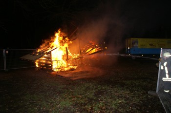 Das Stallgebäude des "Lebendigen Krippenspiels" der Niederdeutschen Bühne auf dem Norder Marktplatz ist in der Nacht zu Sonnabend, nur wenige Stunden nach der Eröffnung des Weihnachtsmarktes, durch ein Feuer vernichtet worden. Der Freiwilligen Feuerwehr Norden war der Brand um 4.05 Uhr gemeldet worden. Beim Eintreffen der etwa 20 Helfer stand die in liebevoller Handarbeit gefertigte Holzhütte in hellen Flammen. Heu und Stroh, welches für die bevorstehenden Aufführungen in der Weihnachtszeit bereit lagen, lieferte dem Feuer reichlich Nahrung. Der Stall ist nach dem Brand stark einsturzgefährdet. Die Feuerwehrleute, die mit drei Fahrzeugen angerückt waren, konnten den Einsatz gegen 5.30 Uhr beenden.