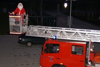 Der Nikolaus fuhr im Korb der Drehleiter vor