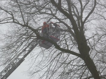 Heute um 9.30 Uhr gab es einen Einsatz für die Drehleiter der Freiwilligen Feuerwehr Norden. Am Fräuleinshof bestand eine Gefährdung durch einen losen Ast in einem Baum auf der dortigen Grünfläche. Da der Baubetriebshof der Stadt durch den Winterdienst stark eingebunden war, wurde die Gefahr kurzerhand durch die Besatzung der Drehleiter beseitigt. Nach ca. einer Stunde war der Einsatz für die Feuerwehr, die mit fünf Einsatzkräften ausgerückt war, beendet.