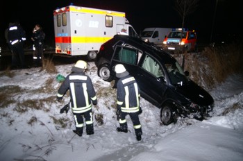 Am Dienstagabend ereignete sich auf dem Südring in Norden ein Verkehrsunfall, bei dem eine Frau verletzt wurde. Gegen 18.15 Uhr kam die Fahrerin mit ihrem VW Tiguan in einer langgezogenen Kurve von der Straße ab und landete in einem Graben. Da Anfangs davon ausgegangen wurde, dass die Frau eingeklemmt war, wurde neben Polizei und Rettungsdienst auch die Freiwillige Feuerwehr Norden alarmiert. Diese rückte mit mehreren Fahrzeugen zur Unfallstelle aus. Vor Ort entspannte sich die Lage dann rasch, da die Frau doch nicht eingeklemmt war. Nachdem der Rettungsdienst die Erstversorgung vorgenommen hatte, unterstütze die Feuerwehr beim Transport der Verletzten aus dem Unfallwagen und aus dem Graben heraus. Der Südring musste kurzeitig für den Verkehr gesperrt werden.