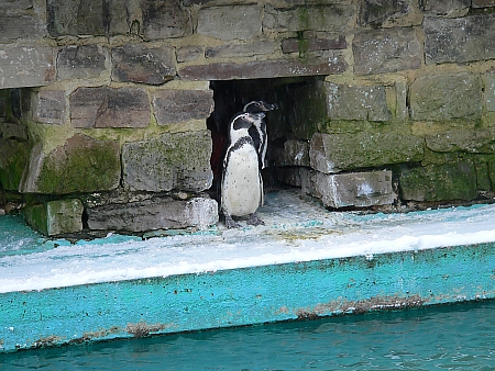 Pinguingehege 003 Das Foto zeigt Fritzi und Anton, die auf den Neubau bei typischem Pinguinwetter warten.