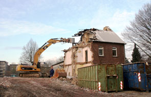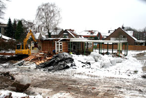 Der Rückbau der Gebäude der alten Goetheschule an der Schulstraße in Disteln ist nahezu abgeschlossen. Das Hauptgebäude ist abgerissen und von den benachbarten Pavillons stehen nur noch Reste. An dieser Stelle wird Platz für die neue Siedlung Goethe-Gärten geschaffen. Die Arbeiten werden voraussichtlich Ende Januar abgeschlossen. Durch die derzeitige Witterung verzögern sich jedoch die zahlreichen Oberflächenarbeiten, die auf dem Gelände noch durchgeführt werden müssen.