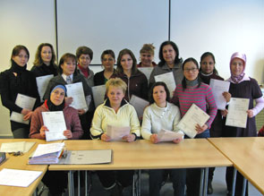 945 Stunden haben sie für den Abschluss gelernt und mit Bestehen der Prüfung einen wichtigen Schritt in Richtung Integration getan. Durch die Kurse lernen die Teilnehmer vor allem, sprachliche Barrieren zu überwinden und sich alleine zu verständigen. So sind sie weniger auf die Hilfe anderer angewiesen. Darüber hinaus kann das Zertifikat auch den Einstieg in das Erwerbsleben bedeuten. Die Absolventen sind ehemalige Teilnehmer aus 2 Integrationskursen. Etwa 30 „Schüler“ nahmen an den Kursen teil, der Rest muss noch mal eine "Ehrenrunde drehen". In diesem Zuge gratuliert die VHS Mila Agaeva, Tetyana Beermann, Martyna Curylo, Sadet Dülger, Sahra El-Kachlan, Irena Ipek, Zakia Jatlaoui, Nazmunnahar Khan, Andrzej Michalski, Gueli Nasimova, Rokeya Rahman, Melek Topuz, Thi Thuy Hong Vu, Hürü Yesil und Jelena Nikolovska.