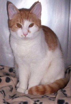 Er ist ein schöner weiß- roter Kater und hat am rechten Ohr eine Tätowierung -T S 0 74. Leider wurde die Nummer nicht registriert. Der Kater ist kastriert. Wir glauben, dass Findel vermisst wird und hoffen, auf diesem Wege seine Halter zu finden.