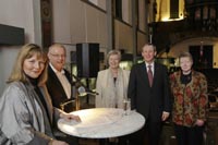 Einen unterhaltsamen Abend erlebten Lektorin Cordelia Borchardt, Literaturkritiker Jochen Hieber, Dr. Elisabeth Friese, Leiterin des Kulturamtes Kempen, Landrat Peter Ottmann und Margret Cordt vom Geschichts- und Museumsverein (von links), gemeinsam mit 300 Besuchern in der Kempener Paterskirche.