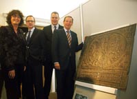 Gut besucht war die Ausstellungseröffnung "Kalte Füße - heiße Platten" in der Dorenburg. Die Eisenplatten mit den religiösen Darstellungen fanden nicht nur bei Landrat Peter Otmann, Kreisdirektor und Kulturdezernent Dr. Andreas Coenen, Hans-Jürgen Kerkhoff, Vorsitzender des Stahlinstituts VDEh und Luise Fruhen, Vorsitzende des Kulturausschusses (von rechts), großes Interesse.
