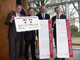 Grimm-Ausstellung geht auf Reisen Kassel. Konzipiert von der Brüder-Grimm-Gesellschaft Kassel und mit finanzieller Unterstützung der Kasseler Sparkasse und der Kulturstiftung des Landkreises Kassel schickt der Landkreis Kassel eine Ausstellung über Leben und Werk der Brüder Grimm in die amerikanische Partnerregion des Kreises Dane County in Wisconsin. „Die Ausstellung wird am Vorabend des German Day am 28. April 2010 in den Ausstellungsflächen des Flughafens der Landeshauptstadt von Wisconsin, in Madison, eröffnet“, informiert Landrat Uwe Schmidt. Die Ausstellung sei speziell für diesen Zweck und die Bedürfnisse amerikanischer Besucher entwickelt worden, ergänzt der Geschäftsführer der Brüder-Grimm-Gesellschaft Dr. Bernhard Lauer. „Der Flughafen Madison bietet die Möglichkeit möglichst vielen Besuchern die Brüder Grimm und ihr Werk näher zu bringen“, so Dr. Lauer weiter. Es sei erst die zweite Grimm-Ausstellung in den USA, welche die Brüder-Grimm-Gesellschaft konzipiert hat. „Auf dem amerikanischen Ausstellungsmarkt haben wir da noch einen gewaltigen Nachholbedarf“, sind sich Landrat Schmidt und der Präsident der Brüder-Grimm-Gesellschaft Dr. Werner Neusel einig. Die Wahl des Flughafens Madison als Ausstellungsort sei nicht zufällig. Schmidt: „Wir werden im Rahmen des ausstellungsbegleitenden Besuchs einer Kreisdelegation in Madison auch über eine stärkere Zusammenarbeit im Bereich Tourismus reden“. Ziel sei es, zusammen mit der Deutschen Märchenstraße, deren Geschäftsstelle von Stadt und Landkreis Kassel getragen wird, zielgenaue Tourenangebote für amerikanische Touristen zu entwickeln, die einen Besuch auf den Spuren ihrer deutschen Ahnen mit einem märchenhaften Urlaubserlebnis verbinden wollen. „Hier bietet sich eine Zusammenarbeit mit Wisconsin an, da der Anteil von aus Deutschland stammenden Einwohnern besonders hoch ist“, berichtet Schmidt, der auch Vorsitzender der Deutschen Märchenstraße ist. Von den rund 430.000 Einwohnern von Dane County hat rund jeder Dritte eine Herkunftsbeziehung mit Deutschland. „Dieser potentielle wirtschaftliche Effekt war neben dem kulturellen Austauschgedanken auch ein Hauptgrund dafür, dass wir das Ausstellungsprojekt unterstützen“, betont der Vorstandsvorsitzende der Kasseler Sparkasse Dieter Mehlich. Die Märchen der Brüder Grimm seien weltbekannt und es sei daher nur logisch, Jacob und Wilhelm Grimm als Werbeträger für die Region Kassel zu nutzen. Neben Kultur und Tourismus stehen für die aus Mitgliedern des Kreistages und des Kreisausschusses bestehende Delegation des Landkreises Kassel auch die Themen Öffentlicher Nahverkehr und Abfallwirtschaft sowie ein Treffen mit der neuen Kanzlerin der University of Wisconsin in Madison auf dem Programm. „Dane County hat nach dem Besuch einer Delegation in Kassel im Jahr 2007 mittlerweile analog des Nordhessischen Verkehrsverbundes eine Regional Transit Authority gegründet“, informiert Landrat Schmidt. Ziel dieser Institution ist es, das vorhandene Schienennetz rund um die Universitätsstadt Madison, das zurzeit nur für den nächtlichen Güterverkehr genutzt wird, zu einem RegioTram-ähnlichen Nahverkehrssystem umzubauen. Neben Mitteln aus Washington und des Landes Wisconsin soll für die Finanzierung die Grundsteuer in Dane County angehoben werden. Schmidt: „Steuererhöhungen sind für Amerikaner an sich ein rotes Tuch – bei den Kommunalwahlen Anfang April haben sich allerdings die Befürworter des öffentlichen Nahverkehrs auf der Schiene durchgesetzt“. Es sei ein gutes Beispiel für internationale Zusammenarbeit, wenn das RegioTram-Konzept jetzt auch in den USA Nachahmer finde, so der NVV-Aufsichtsratsvorsitzende Schmidt weiter. Im Bereich Abfallwirtschaft plane Dane County den verstärkten Einsatz von Energiegewinnung aus Biomasse. „Unser Partnerkreis ist außerhalb von Madison noch stark landwirtschaftlich geprägt – da trifft es sich gut, dass wir unsere Erfahrungen im Bereich von Biogasanlagen weitergeben können“, erläutert der Landrat. Mit Blick auf die aktuellen Einschränkungen im Flugverkehr durch die isländische Aschewolke hoffen Schmidt und Dr. Lauer abschließend, dass es zu keinen Problemen bei dem für den 26. April geplanten Flug nach Wisconsin geben wird. Hintergrund: Mitglieder der Kreisdelegation sind Vizelandrätin Susanne Selbert, Kreistagsvorsitzender Gerald Herber und die ehrenamtlichen Kreisbeigeordneten Thomas Ackermann, Siegfried Klöver, Christian Strube und Dr. Otger Wedekind. Von der Kreisverwaltung nimmt Kreispressesprecher Harald Kühlborn an der Delegationsreise teil, der auch für internationalen Partnerschaften des Landkreises zuständig ist. Als weiteres Delegationsmitglied ist Dr. Lauer mit von der Partie, der die Grimm-Ausstellung vor Ort aufbauen wird. Pressekontakt: Pressestelle LANDKREIS KASSEL, Harald Kühlborn Zu dieser Meldung können wir Ihnen folgendes Medium anbieten: Dane County Auf dem Foto von links nach rechts: Dr. Werner Neusel, Dr. Bernhard Lauer, Dieter Mehlich und Landrat Uwe Schmidt.