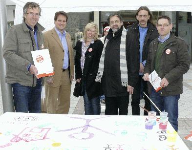 "Inklusion - Dabei sein. Von Anfang an." - Aktionstag des Beirates für Menschen mit Behinderung Am 26. März 2009 trat die UN-Konvention über die Rechte von Menschen mit Behinderungen in Deutschland in Kraft. Der Begriff Inklusion ist eines der Schlüsselworte des Übereinkommens. Der vom Wort inclusio - lateinisch für Einschluss - abgeleitete Begriff steht für den Anspruch, Menschen mit Behinderungen von vornherein als Teil der Gesellschaft zu begreifen. Das bedeutet, die Gesellschaft hat die Aufgabe, sich so zu organisieren, dass jeder daran teilhaben kann. Menschen mit Behinderung haben ein Recht darauf, als Teil der Gesellschaft gleichgestellt zu sein und von Anfang an dazu zu gehören. Das Motto des diesjährigen Aktionstages am 5. Mai lautet "Inklusion - Dabei sein. Von Anfang an." Ziel ist es, in allen Lebensbereichen wie zum Beispiel Arbeit, Bildung, Wohnen und Zugänglichkeit Inklusion konsequent umzusetzen. Dies umfasst auch das gemeinsamen Lernen von behinderten und nichtbehinderten Kindern an Regelschulen sowie Arbeit und Barrierefreiheit. Bundesweit finden dazu rund um den 5. Mai öffentliche Aktionen statt, die von der “Aktion Mensch” und “Die Gesellschafter” gefördert werden. In Iserlohn hat der Beirat für Menschen mit Behinderung am 5. Mai einen Aktionstag Inklusion veranstaltet. An seinem Infostand vor der Reformierten Kirche an der Wermingser Straße konnten die Beiratsmitglieder zahlreiche Bürgerinnen und Bürger begrüßen. Neben allgemeiner Information zu dem Thema konnten die Standbesucher an einem Quiz teilnehmen. Vertreter der Ratsfraktionen trafen sich dort und gestalteten gemeinsam ein "Inklusionsplakat" mit Anregungen, Ideen und Vorstellungen zum Thema: Was ist Inklusion? Was umfasst Inklusion? Wie kann sie bildlich dargestellt werden? Wie kann Inklusion in Iserlohn geschaffen werden? Das bunte Plakat, welches die Lebensbereiche Schule, Arbeit, Wohnen und Barrierefreiheit zeigt, wird im Internet unter anderem bei der “Aktion Mensch” und in den nächsten Tagen auf der Internetseite der Stadt Iserlohn (Stichwort “Menschen mit Behinderung” anklicken) veröffentlicht. |