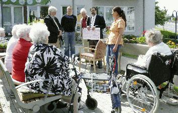 Seniorenzentrum Waldstadt Iserlohn: Förderverein finanziert Pflanzkästen Eine schöne Überraschung bereitete der Förderverein des Seniorenzentrums Waldstadt Iserlohn (SWI) den Bewohnern der Einrichtung. Die hatten sich schon seit längerem Blumenkästen gewünscht, die sie selbst bepflanzen und pflegen können. Wichtig dabei sei aber, dass auch Rollstuhlfahrer an die Kästen heranreichen bzw. diese unterfahren könnten. Die Heimleitung trug dies dem Förderverein des Seniorenzentrums vor. Der erklärte sich bereit, die Kosten für die Herstellung zu übernehmen. Man kam überein, dass die Pflanzkästen auf der Terrasse vor dem Haupteingang des SWI stehen sollten. Außerdem sollten sie sich optisch in die Gestaltung des neuen Bahnhofplatzes einfügen und gleichzeitig Elemente des Seniorenzentrums mit aufnehmen. Für die Umsetzung dieser Vorgaben wurden Stadtplanerin Gabriele Bilke und ihr Kollege Thorsten Wattenberg um Vorschläge gebeten. Zum Beispiel bot sich die Möglichkeit, das Schöne mit dem Nützlichen zu verbinden. So sollen die Kästen mit ihrer sommerlichen Blumen-Bepflanzung nicht nur die Betrachter erfreuen, sondern sie dienen auch als Namens- und Hinweisschild: Der Namenszug des Seniorenzentrums, der unter den Pflanzkästen angebracht ist, kann bei Dunkelheit beleuchtet werden. Mitte Juni war es dann soweit. Bei herrlichem Sonnenschein konnten Michael Scheffler, Vorsitzender des Fördervereins des SWI, und seine Vorstandskollegen Christian Grobauer sowie Friederich Schmidt die Pflanzkästen und einen symbolischen Scheck in Höhe von 4500 Euro - mit dieser Summe wurde das Projekt finanziert - an die Mitglieder des Bewohnerbeirates und Betriebsleiter Meinolf Breimhorst übergeben. Mit einem Glas Sekt wurde das schöne Ereignis gebührend gefeiert. |