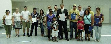 Landrat Michael Makiolla mit den deutschen Neubürgern. Foto: Kreis Unna