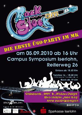 “Rock am Stock” - die erste Ü 60-Party im Märkischen Kreis “Rock am Stock” heißt es am Sonntag, 5. September, ab 16.00 Uhr in den Zelten des Campus Symposiums am Reiterweg 26 in Iserlohn. Mit der Ausrichtung der ersten Ü 60-Party im Märkischen Kreis betritt die Stadt Iserlohn Neuland. “Es gibt “Ü-Feten” ab 20 bis 40 Jahre. Und das obwohl doch gerade die Generation 60plus die Zeiten des Rock’n Roll, des Petticoats und Woodstock erlebt und mitgestaltet hat”, ist der 1. Beigeordneten Katrin Brenner die "Rock am Stock” / Ü 60-Party in Iserlohn ein wichtiges Anliegen. Als Symposium-Geschäftsführer Mathias Thelen die Zeltstadt am Seilersee, in der sonst Persönlichkeiten wie Bill Clinton, Kofi Annan und in diesem Jahr Al Gore zu Gast sind, spontan zur Verfügung stellte, wurde aus der Idee schnell die konkrete Veranstaltung mit Musik, Tanz, Essen, Kurzweil und hoffentlich jeder Menge Spaß. Die Ü 60-Party beginnt mit dem "Tanztee" (16.00 bis 18.30 Uhr). Bei Kaffee und Kuchen dürfen sich die Besucher auf “Änne aus Dröpplingsen” freuen. " Rock am Stock" heißt es dann von 19.00 Uhr bis “Ende offen” mit den Oldie Bands "1899" und "Workers Delight" sowie DJ Andreas Barth. Gegen 20.30 Uhr sorgt Elvis-Imitator "Aron King" für Unterhaltung. Für das leibliche Wohl werden herzhafte Snacks angeboten. Im Eintrittspreis von fünf Euro sind ein Kaffee und ein Stück Kuchen enthalten. Eintrittskarten gibt es ab sofort bei Eckhardt Liesche im Rathaus II, Zimmer U-104, Werner-Jacobi-Platz 12, Telefon 02371 / 217-2077, bei der Stadtinformation im Iserlohner Stadtbahnhof, Bahnhofsplatz 2, Telefon 217-1819, und im Hotel Korth, In der Calle 4 - 7, Telefon 02371/97870. |