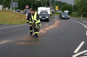 Eine mehrere Kilometer lange Dieselspur beschäftigte am Dienstagmorgen (03.08.2010) die Freiwillige Feuerwehr Norden sowie die Ortswehr des Fleckens Hage. Im Gewerbe- und Dienstleistungspark Leegemoor in Norden begann die Spur auf der Stellmacherstraße in Höhe der Böttcherstraße. Sie zog sich zunächst über die Wurzeldeicher Straße bis auf die Umgehungsstraße.