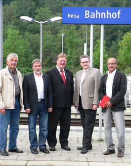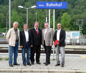 Ecopfad „Industrie- und Kulturgeschichte“ Helsa kann realisiert werden Helsa. „Die Ecopfade im Landkreis Kassel sind ein Erfolgsmodell, das kreisweit immer mehr an Bedeutung gewinnt“, stellt Landrat Uwe Schmidt bei einem Besuchstermin in Helsa fest. Dort soll im nächsten Jahr ein weiterer Ecopfad zum Thema „Industrie- und Kulturgeschichte“ realisiert werden. „Gerade das Thema Industriegeschichte spielt in Helsa eine wichtige Rolle“, informiert der Helsaer Bürgermeister Thilo Küthe. Standorte von alten Mühlen, das Basalt- und Sägewerk Kaskadengraben und die Glashütte seien als feste Bestandteile des Ecopfades eingeplant. Küthe: „Außerdem wollen wir auch die Geschichte Helsas präsentieren“. Geplant seien insgesamt 11 Informationstafeln – der Ecopfad wird am Bahnhof Helsa beginnen. Der Weg soll dann über rund 8 Kilometer zum Basaltwerk und zur Firma Esterer führen. Von dort geht es weiter über Mühle, Kirche und Sägewerk zur Obermühle und den Kaskaden. Am Helsaausblick wird über die Geschichte Helsas informiert, über das Therapiezentrum führt der Weg zum Lappenloch und wieder zurück zum Ausgangspunkt. Schmidt: „Ich bin sicher, dass sich der Ecopfad Helsa ein wichtiger Bestandteil der Ecopfade im Landkreis sein wird“. Für die Gestaltung und Errichtung der Informationstafeln und der Wegweiser fallen Kosten in Höhe von rund 20.700 Euro an. Auf Empfehlung des Landkreises wird die touristische Infrastrukturmaßnahme vom Land Hessen mit 10.142 Euro unterstützt. Die restlichen Kosten übernimmt die Gemeinde Helsa. Der nächste Ecopfad im Landkreis Kassel wird nach Auskunft des Landrats am 15. August in Fuldatal-Simmershausen eingeweiht – weitere Ecopfade sind in Baunatal-Guntershausen, Grebenstein-Burguffeln, Habichtswals, Helsa-St. Ottilien, Hofgeismar, Hofgeismar-Hümme, Kaufungen, Liebenau-Lamerden, Naumburg, Oberweser-Gieselwerder, Schauenburg, Wahlsburg, Wolfhagen und Zierenberg-Burghasungen geplant. „Die bisherigen Ecopfade werden gut angenommen und das große Interesse an weiteren Lehrpfaden zeigt, dass diese Initiative ein Erfolgsmodell ist“, so Schmidt weiter. Aktuelle Informationen über die Ecopfade im Landkreis Kassel gibt es auch im Internet. Unter www.eco-pfade.de sind sämtliche Faltblätter der Ecopfade im Kreis Kassel und die neuesten Entwicklungen zum Thema kulturgeschichtliche und archäologische Wanderstrecken zu finden. Außerdem liegen mittlerweile auch für drei Ecopfade Hörführungen vor. Schmidt: „Wir sind mit dem Dörnberg, Helmarshausen und Gottsbüren gestartet und werden als nächstes die Ecopfade Lohfelden, Nieste und Söhrewald vertonen“. Das Erstellen der Hörführungen, die entweder als MP3-Datei von der Internetseite herunter ladbar sind oder im Infozentrum des Naturparks Habichtswald auf dem Dörnberg, im Infozentrum Reinhardswald und im Tierpark Sababurg als CD zu erwerben sind, wird vom Land Hessen und der Sparkassenstiftung Kultur der Kasseler Sparkasse finanziell unterstützt. Pressekontakt: Pressestelle LANDKREIS KASSEL, Harald Kühlborn Zu dieser Meldung können wir Ihnen folgende Medien anbieten: Eco Pfad Helsa 001 Auf den angehängten Fotos sieht man von links nach rechts Winfried Rode (Dorfgemeinschaft Helsa), Jürgen Scholz (Dorfgemeinschaft Helsa), Bürgermeister Thilo Küthe, Landrat Uwe Schmidt und Manfred Schröder (Dorfgemeinschaft Helsa) am Bahnhof Helsa, dem Einstieg in den geplanten Ecopfad.