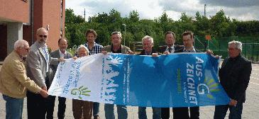 Mit der Weitergabe der Flagge an die Gemeinde würdigte der Kreis im Rahmen seiner Klimaschutzinitiative Planung und Bau einer vierzügigen Grundschule und einer Turnhalle in Passivbauweise. Richtung Bönen weitergereicht wurde die Klimaschutzflagge von der Werner Firma Glitz-Ehringhausen, die die Auszeichnung für die klimafreundliche Produktion von dem Bio-Kraftstoff Ethanol bekommen hatte.
