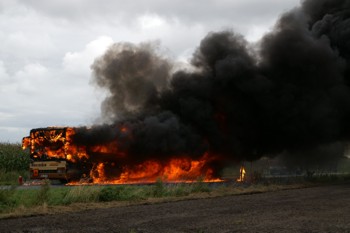 Der Busfahrer hatte zwar noch eigene Löschversuche unternommen, das Feuer breitete sich jedoch mit rasender Geschwindigkeit aus (zwischen den Bildern 1 & 8 vergingen gerade einmal sieben Minuten). Ein Lkw-Fahrer hatte ihn zuvor auf eine Rauchentwicklung aus dem Motorraum aufmerksam gemacht. Glücklicherweise hatten die letzten Schulkinder den Bus an einer Haltestelle, kurz vor dem Brandausbruch, verlassen.