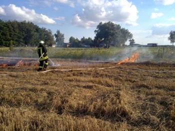 Auf einem Stoppelfeld an der Ziegeleistraße in Westermarsch II brannte ungepresstes Stroh. Da in der Alarmmeldung von einem größeren Ausmaß gesprochen würde, rückte die Wehr auch mit etwa 45 Helfern sowie fünf Fahrzeugen an, auch das Deutsche Rote Kreuz war vor Ort.