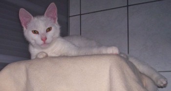 Flocke ist taub, wie viele weiße Katzen. Der Kater ist zutraulich und lieb. Wir suchen für ihn ein neues Zuhause in dem er als reine Wohnungskatze gehalten wird. Flocke wurde bei uns entwurmt, geimpft, gechipt und kastriert. Möchten Sie Flocke ein neues Zuhause geben? Dann melden Sie sich bitte beim bmt - Tierheim Hage, Hagermarscher Straße 11, 26524 Hage, Tel. 04938-425. Das Telefon ist von 14.30 bis 17.00 besetzt.