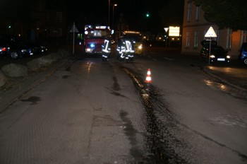 Er meldete sein Malheur sofort der Polizei. Diese benachrichtigte dann die Freiwillige Feuerwehr Norden. Gemeinsam mit einer Spezialfirma wurde die Fahrbahn wieder gereinigt. Hierfür wurde die Mittelmarktstraße teilweise gesperrt.