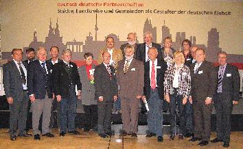 Kreis Steinfurt/Berlin. Der langjährigen, deutsch-deutschen Partnerschaft der Kreise Steinfurt und Demmin wurde kurz vor dem Tag der Deutschen Einheit eine besondere Ehre zuteil. Auf Einladung des Bundesinnenministers Thomas de Maizière nahmen die Landräte beider Kreise, Thomas Kubendorff und Siegfried Konieczny, jetzt mit einer Delegation am Kommunalen Partnerschaftskongress 2010 in Berlin teil. Überschrieben war der Kongress mit dem Titel „Deutsch-deutsche Partnerschaften – Städte, Landkreise und Gemeinden als Gestalter der deutschen Einheit". Neben einem Rückblick auf 20 Jahre deutsch-deutsche Partnerschaften und der Ehrung der Städtepartnerschaft zwischen Erlangen und Jena wurde im Laufe des Kongresses mehr und mehr deutlich, dass eine Fortsetzung der innerdeutschen Partnerschaften sicherlich sinnvoll ist, man sich jedoch zukünftig – wenn möglich - zunehmend in den europäischen Kontext einbringen sollte. Die Partnerkreise Demmin und Steinfurt nutzten die Zeit vor Beginn des Kongresses für die alljährlich stattfindende gemeinsame Sitzung der Arbeitskreise „Kreispartnerschaften". Aufgrund entsprechender Kreistagsbeschlüsse werden beide Partnerkreise ihre langjährige und bewährte Partnerschaft über 2011 hinaus fortführen. Trotz der Kreisgebietsreform in Mecklenburg-Vorpommern in 2011 stehen die Zeichen dafür gut, wie Landrat Konieczny aus Demmin nach Gesprächen mit den beiden Fusionskreisen berichtete. Im Ergebnis wurde vereinbart, 2012 eine Partnerschaftskonferenz durchzuführen, zu der die internationalen Partnerkreise - Koczalin in Polen, Telsiai und Utena in Litauen - eingeladen werden. Veranstaltungsort wird voraussichtlich Waren/ Müritz sein, da die dortige Europäische Akademie ein geeigneter Ort für die Neuorientierung der innerdeutsche Partnerschaft mit seinen internationalen Partnern ist. Besonders gefreut hat die Arbeitskreismitglieder, dass der Partnerschaftkongress letztlich diese Neuorientierung als tragende Chance für die Fortsetzung innerdeutscher Partnerschaften generell bestätigte.