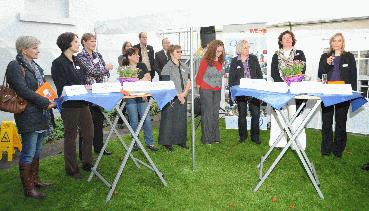 Kreis Steinfurt. „Münsterland Initiative Unternehmerin" – Dies war in großen Buchstaben auf dem Bus zu lesen, der jetzt vor dem Gebäude der Wirtschaftsförderungs- und Entwicklungsgesellschaft Steinfurt (WESt) Halt machte. Aus dem Bus stiegen die Verantwortlichen der elf Projektpartner: Vertreter von Wirtschaftsförderungen, Handwerkskammer, IHK, Fachhochschule Münster, der Westfälischen Wilhelms-Universität sowie von „Frau und Beruf" Ahlen und Münster. Im Garten der WESt versammelt waren bereits zahlreiche Unternehmerinnen aus dem Kreis Steinfurt sowie Verantwortliche von bedeutenden Institutionen der Region. Bernhard Hembrock, stellvertretender Landrat des Kreises Steinfurt, begrüßte die Gäste und berichtete über das umfangreiche Programm, das die WESt im Rahmen des Projektes „Münsterland Initiative Unternehmerin" gezielt für Unternehmerinnen auf die Beine gestellt hat. In der anschließenden Talkrunde stellten sich acht Unternehmerinnen aus dem Unternehmerinnen-Netz des Kreises Steinfurt vor. Das Netz hat die WESt vor knapp zwei Jahren gegründet und ist eines der wesentlichen Angebote im Rahmen dieses Projektes. Die Unternehmerinnen blickten in der Talkrunde zusammen mit den Anwesenden zurück: Sie berichteten von den Anfängen ihrer Selbständigkeit, von Hilfen und Hürden auf ihrem Weg und über ihre jetzige Situation. Mechthild Höffker vom Jägerhof in Borghorst fasste es treffend zusammen: „Selbständigkeit ist harte Arbeit, bringt aber auch viel Freude." Alle waren sich einig, dass ihnen bei ihrer Selbständigkeit das Angebot der WESt sehr weitergeholfen hat und sie insbesondere von dem Unternehmerinnen-Netz profitieren. Zum Abschluss sangen alle Anwesenden gemeinsam unter der Leitung von Veronika Hoffstädt von „Pro Musica", Westerkappeln. Die gesamte Veranstaltung wurde von den befragten Unternehmerinnen ausgerichtet. Mit dem Bus ging es weiter zur nächsten Station auf dem Weg durch das Münsterland, um sich über die weiteren Ergebnisse der Projektpartner zu informieren. Das nächste Treffen des Unternehmerinnen-Netzes findet statt am Mittwoch, 24. November, 20 Uhr, in Saerbeck. Interessierte Unternehmerinnen sind willkommen und können sich bei der WESt, Telefon 02551/69-2700 oder Mail unter post@westmbh.de in den Verteiler aufnehmen lassen.