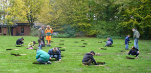 Auf der Wiese vor dem Jugendzentrum Nord blühen nächstes Jahr knapp 2000 gelbe Narzissen. Dafür haben vor kurzem die vom JZ Nord betreuten Kinder gesorgt. Gemeinsam mit den Mitarbeitern des ZBH brachten sie Blumenzwiebeln unter die Erde.