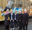 Den Start frei für die Linie 4 der KVB gaben (v.l.n.r.): Bürgermeisterin Elfi-Scho-Antwerpes, Bayer 04 Spielerinnen Maren Henseler und Lisa Schmitz, Oberbürgermeister Reinhard Buchhorn und der Leiter des WM-Büros, Hans Becker.
