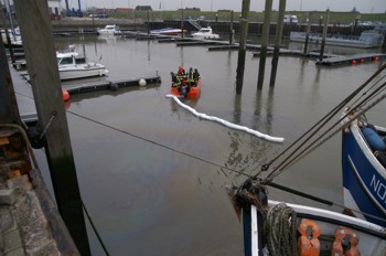 Die Feuerwehr rückte mit zwei Löschgruppenfahrzeugen und dem Mehrzweckboot aus. Da auflaufendes Wasser war, wurde der Ölfilm in den Osthafen hineingedrückt. An mehreren Stellen wurde zunächst mit aktiven Ölsperren versucht, das Öl aufzunehmen. Parallel dazu wurde eine Spezialfirma für Ölschadenbeseitigungen hinzu gerufen um den Ölfilm abzusaugen und einer fachgerechten Entsorgung zuzuführen. Der Einsatz zog sich bis nach 20.00 Uhr hin.