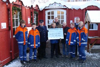 Die freie Wählergemeinschaft ZoB hat am Mittwochnachmittag auf dem Ludgeri-Weihnachtsmarkt eine Spende an die Jugendfeuerwehr Norden übergeben. Das Geld kam bei einer Verkaufsaktion von Kaffee und heißen Waffeln in der Aktionshütte zusammen. Insgesamt wurde ein Betrag von ca. 300 Euro eingenommen und dann von der ZoB auf 500 Euro aufgestockt.
