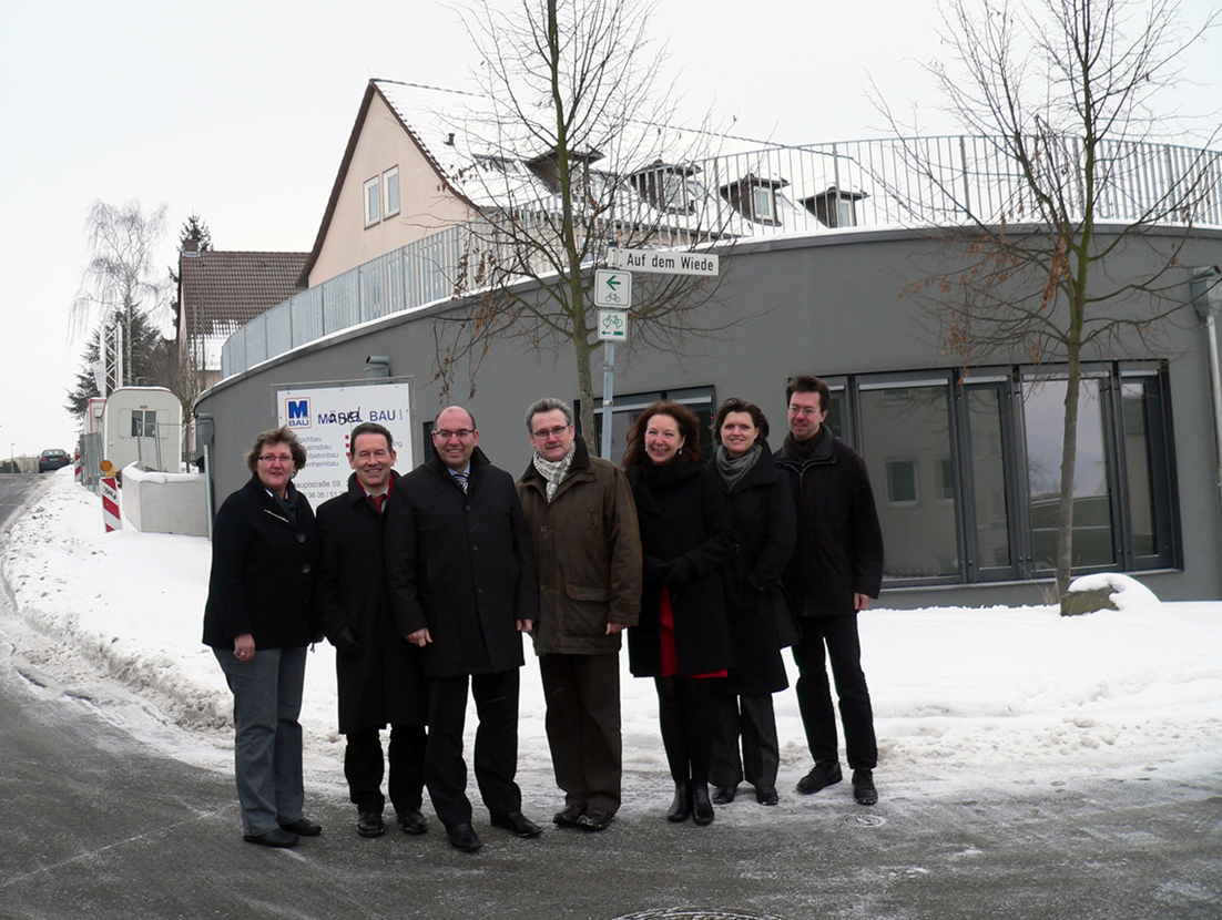 Modernisierung der Baunsbergschule „auf gutem Weg“ Baunatal. „Die Modernisierung der Baunsbergschule ist auf einem guten Weg“, freut sich Landrat Uwe Schmidt bei der Besichtigung der Baumaßnahme in Baunatal-Altenbauna. Mit den Mitteln des Zukunftsinvestitionsprogramm des Bundes saniert und erweitert der Landkreis die Schule für Lernhilfe in Baunatal. Rund 2,9 Millionen Euro stehen dem Landkreis zur Verfügung, um die Baunsbergschule in insgesamt drei Bauabschnitten bis Frühjahr 2011 zu sanieren, davon 2,7 Millionen Euro vom Bund. Schmidt: „Der erste Bauabschnitt mit dem Neubau ist abgeschlossen – trotz des frühen Winters haben wir auch schon mit der Sanierung im Bestand begonnen“. Da die Raumsituation an der Baunsbergschule sehr beengt ist, hatte sich der Landkreis dazu entschlossen, ein neues Schulgebäude mit zwei Klassen, zwei Gruppenräumen, einer Lehrküche und einer Aula bauen zu lassen. „Was bereits bei den Plänen gut aussah, ist jetzt auch in der Praxis gut gelungen“, lobt der Landrat das beauftragte Architekturbüro RSE Kassel. Der Neubau lässt genügend Platz auf dem Schulgelände als Freiraum für die Schüler übrig und fügt sich in Größe und Architektur harmonisch in die Bestandsgebäude und das Umfeld der Schule ein. „Wir haben mit dem Neubau angefangen, da die Einbindung in das Schulareal die größte Herausforderungen war“, berichtet Karin Knobloch (RSE Kassel). Das neue Gebäude mit einer Bruttogeschossfläche von 509 Quadratmetern wurde in Massivbauweise mit einem Gründach und einer wärmegedämmten Fassade errichtet. Im zweiten und dritten Bauabschnitt, die hintereinandergeschaltet bis Ende Mai 2011 abgeschlossen sein sollen, werden die Bestandsgebäude mit den Werkräumen, Klassen sowie der Verwaltung teilsaniert und die Räume vereinzelt neu strukturiert, ergänzt Uwe Schenk, stellvertretender Fachbereichsleiter Schulen und Bauwesen beim Landkreis. „Dass es jetzt bald wieder zu tauen beginnt, macht uns zuversichtlich, dass wir diesen Termin auch einhalten können“, so Schenk weiter. Die Sanierung der Bestandsgebäude umfasst die Oberflächen in Teilen von Wand, Boden, Decke sowie die Erneuerung der Toilettenanlagen. Die Putzfassaden und Fenster werden überarbeitet beziehungsweise ausgetauscht. Die gesamte Baumaßnahme wurde mit dem Landesamt für Denkmalpflege abgestimmt, da zwei der Schulgebäude (Baujahr 1952) unter Denkmalschutz stehen. „Da wir die Sanierungs- und Modernisierungsarbeiten im laufenden Schulbetrieb durchführen, hat es bisher Lärm und Staub gegeben und das wird auch noch eine Weile so weitergehen“, bittet Landrat Schmidt Schulgemeinde und Anwohner weiter um Verständnis für die baubedingten Einschränkungen. Dass es bisher noch keine Klagen gegeben hat, zeige allerdings, dass alle Beteiligten verantwortungsvoll mit der Situation umgehen.