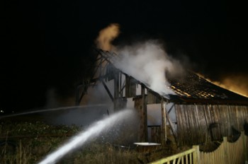 Da die Scheune akut einsturzgefährdet war, konnten die Einsatzkräfte diese zum Ablöschen nicht mehr betreten.