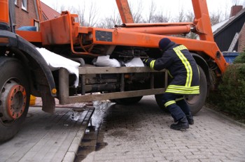 An einem Lkw eines Containerdienstes ist am Dienstagmorgen ein Hydraulikschlauch geplatzt.