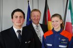 Sprecherin der Jugendfeuerwehr, Auri Lütkenhorst (rechts), mit ihrem Kameraden David Frier (links) zu Gast bei Innenminister Ralf Jäger (mitte)