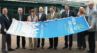 Mit der Weitergabe der Flagge an das Hotel Katharinenhof und das Ingenieur-Netzwerk Uwe Splieth würdigte der Kreis im Rahmen seiner Klimaschutzinitiative das große Engagement und die Vorbildlichkeit für die energetische Qualität des Umbaus und der Erweiterung des Hotels in Unna.