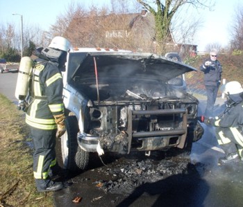 Der Motorraum eines PKW brannte dort in voller Ausdehnung.