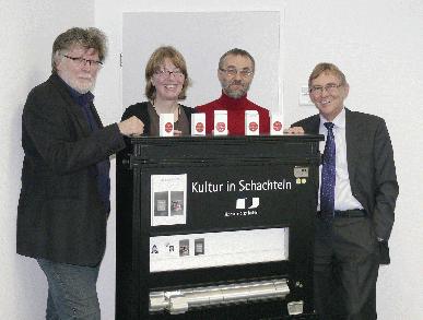 “Kulturautomat” verkauft Kultur in Schachteln Kultur in Schachteln präsentieren die Museen der Stadt Iserlohn künftig mit ihrer neuesten Errungenschaft, dem “Kulturautomaten”: Ein umfunktionierter alter Zigarettenautomat “verkauft” kleine “Kulturstückchen” zum Preis von zwei Euro. Museumsleiter Gerd Schäfer wurde bei der Umsetzung des Projektes von heimischen Sponsoren und von Ehefrau und Künstlerin Angelika Schäfer, die das Design der Kultur in Schachteln schuf, und Sohn Jan, der als Fotograf die Autorenporträts für die Kulturstückchen kreierte, sowie von seinem Museumsteam unterstützt. Ulrich Sauer (früher Takab Sauer) spendete einen alten Zigarettenautomaten und Ralf Treese (Tabak Semer) und Josef Maciej berieten und halfen bei der Umstellung des alten Automaten-Münzprüfers auf die “neuen” Zwei-Euro-Stücke. Mit Hilfe von Kai Beutler (Verpackungssysteme Beutler) schließlich gelang mit dessen alten Werkzeugen die Herstellung der benötigten Schachteln. Premiere des “Kulturautomaten” wird anlässlich des Nadelmarktes am 2. und 3. April in der Historischen Fabrikanlage Maste-Barendorf sein. Dann können sich die Besucher einen - in Fortsetzung einer alten Tradition - modern gestalteten Nadelbrief mit Nähnadeln aus dem Automaten ziehen. Der zweite Einsatz findet anlässlich der NRW-Literaturtage in Iserlohn vom 19. bis 21. Mai statt. Zehn nordrheinwestfälische Literaten aus den unterschiedlichsten Genres, vom Krimi bis zur politischen Satire, stellen Texte als “Kulturstückchen” zur Verfügung, die sich als Schriftrollen in den Verpackungen des “Kulturautomaten” befinden werden. Mit dabei sind die Krimiautoren Dr. Walter Wehner und H.P. Karr, Autorin Andrea Reichart und der bekannte politische Kabarettist Volker Pispers. Der Erlös dieser Aktion kommt dem Schriftstellerverband NRW zur Förderung des literarischen Nachwuchses zugute. Der Einsatz des “Kulturautomaten” ist künftig mit immer neuen Inhalten an wechselnden Standorten geplant, zum Beispiel beim DrahtSaitenAkt und im “Weihnachtlichen Barendorf”. |