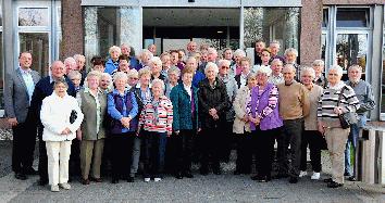 Kreis Steinfurt. Auf ihrer Tour durch den Kreis Steinfurt hat die KAB St. Michael aus Ibbenbüren-Bockraden in Begleitung des CDU-Kreistagsmitgliedes Christoph Borgert Station in der Kreisverwaltung Steinfurt gemacht. Zunächst stärkten sich die 54 Frauen und Männer in der Kantine bei Kaffee und Kuchen, bevor die stellvertretende Leiterin des Gesundheitsamtes, Dr. Anke Bösenberg, den Senioren Tipps und Informationen zum „Gesund-bleiben-im-Alter“ mit auf den Weg gab. Kreisarchivarin Ute Langkamp zeigte alte Bilder aus Ibbenbüren und Bockraden. Viele konnten sich noch gut an die damaligen Zeiten erinnern. Zum Abschluss kam die KAB St. Michael noch in den Genuss einer Premiere. Sie durften Gast sein bei der Vorstellung des neuen Imagefilms des Kreises Steinfurt.