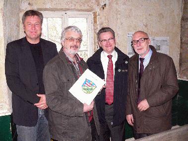 Landeskonservator Prof. Dr. Weiß zu Gast im Landkreis Kreis Kassel. Ein umfangreiches Programm hat sich der Chef der Hessischen Denkmalpflege Landeskonservator Prof. Dr. Gerd Weiß bei seinem jüngsten Besuch im Landkreis Kassel vorgenommen. Start des Kreisbesuchs war das „Mönchshaus“ im Espenauer Ortsteil Mönchehof. „Das ist vorbildliches bürgerschaftliches Engagement, das der Förderverein hier leistet – die Sanierung des ältesten Gebäudes in Mönchehof wird sicherlich zur Identitätsstiftung im Ort beitragen“, betont Prof. Dr. Weiß, als ihm Vereinsvorsitzender Hans-Dieter Baller durch die Räume führt. Das Landesamt für Denkmalpflege unterstütze dieses Engagement mit 40.000 Euro, weitere 20.000 Euro steuert die Gemeinde Espenau hinzu. „Das ist für eine Gemeinde wie Espenau viel Geld, aber ich nach anfänglicher Skepsis stehen jetzt doch alle Parteien in der Gemeindevertretung hinter dem Projekt“, berichtet der Espenauer Bürgermeister Michael Wielert. Auch der Landkreis Kassel beteiligt sich an der Finanzierung der Sanierungsmaßnahme. „Aus unseren Denkmalschutzmitteln können wir 10.000 Euro zur Verfügung stellen, die allerdings erst nach der Haushaltsgenehmigung durch das Regierungspräsidium Kassel fließen können“, informiert Landrat Uwe Schmidt. Vereinsvorsitzender Baller, der auch Mitglied des Denkmalbeirats des Landkreises Kassel ist, gab dem Gast aus Wiesbaden einen Überblick über die seit rund vier Wochen laufenden Arbeiten: „Im Vordergrund steht die Sicherung des Daches des aus dem 13. Jahrhundert stammenden Hauses – außerdem haben wir mit den Aufräumarbeiten in den Räumen begonnen“. Die Vereinsmitglieder hätten bisher rund 100 Stunden ehrenamtlich im Haus gearbeitet. Bei den Sanierungsarbeiten wurde durch die beauftragte Dachdeckerfirma aus Grebenstein ein Feierabendziegel aus dem Jahr 1776 gefunden. So bezeichnete man die letzten Ziegel einer Tagesproduktion in den Zeiten, in denen Ziegel noch handgefertigt wurden. Auf der Rückseite wurden zum Beispiel Jahreszahlen oder Zeichen und Bilder eingeritzt. Nach dem Termin in Espenau stand ein Besuch des Südportals des Eisenbahntunnels der ehemaligen Kurfürst-Wilhelm-Nordbahn bei Trendelburg-Deisel auf dem Programm von Prof. Dr. Weiß und Landrat Schmidt. Der 202 Meter lange leicht gekrümmte Tunnel wurde 1847 fertiggestellt und gehört damit zu den ältesten erhaltenen Eisenbahntunneln in Deutschland. Seitdem die Strecke 1966 stillgelegt wurde, hatten Wind und Wetter besonders an den beiden Tunnelportalen genagt. „Das Nordportal wird seit dem letzten Jahr saniert für 45.000 Euro saniert – die Kosten tragen sich das Landesamt für Denkmalpflege, der Landesbetrieb HESSEN-FORST, dem der Tunnel gehört und der Landkreis Kassel“, erläutert Peter Reuting aus Hofgeismar, der die Sanierungsarbeiten leitet. Der Landkreis Kassel unterstützt die Sanierungsarbeiten durch Mitarbeiter des Eigenbetriebs Jugend- und Freizeiteinrichtungen aus dem nahe gelegenen Wasserschloss Wülmersen. „Als nächstes wird jetzt das Südportal saniert“, kündigt Landeskonservator Prof. Dr. Weiß an. Damit die Arbeiten beginnen können, stellt die Landesdenkmalpflege 70.000 Euro zur Verfügung. „Das ist eine außergewöhnliche finanzielle Unterstützung für ein außergewöhnliches Denkmal der Industrie- und Mobilitätsgeschichte“, bedankt sich Landrat Schmidt. Mit den Mitteln soll nicht nur die neoromanische Fassade saniert werden. Schmidt: „Wir wollen auch, wie beim Nordportal, die Möglichkeit schaffen, rund 20 Meter in den Tunnel hineingehen zu können“. Einer weitergehenden touristischen Nutzung des Tunnels stehen Naturschutzbelange entgegen. „Direkt hinter dem Südportal beginnt ein Flora-Fauna-Habitat-Gebiet und im Tunnel selbst gibt es Brutstellen einer seltenen Fledermausart“, informiert Klemens Kahle vom zuständigen Forstamt Reinhardshagen. Pressekontakt: Pressestelle LANDKREIS KASSEL, Harald Kühlborn Zu dieser Meldung können wir Ihnen folgende Medien anbieten: Moenchshaus Espenau 001 Auf dem Foto sieht man das Mönchshaus in Espenau, Bürgermeister Michael Wielert, Vereinsvorsitzender Hans-Dieter Baller, Landrat Uwe Schmidt und Landeskonservator Prof. Dr. Gerd Weiß.