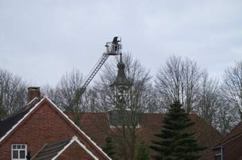 Am Montagmorgen wurde die Freiwillige Feuerwehr Norden im Namen des Herrn tätig. Auf dem Dach der Kirche im Ortsteil Bargebur hatte sich die Wetterfahne gelöst und drohte abzustürzen. Kirchenmeister Blumenfeld hatte am Morgen das drohende Unheil entdeckt und die Norder Wehr benachrichtig. Diese rückte mit der Drehleiter und sechs Helfern an und entfernte die Wetterfahne. An ihr nagte der Zahn der Zeit und Rost hatte die Metallteil zerfressen. Das gute Stück stammt aus dem Jahre 1684. Da auch die Befestigungsstange der Fahne in keinen sonderlich guten Zustand war, schnitten die Feuerwehrmänner diese auch gleich mit ab, so war jegliche Gefahr beseitigt. Nun stehen in der Stadt Norden bereits zwei Gotteshäuser ohne Wetterfahne da. Bereits am 20 Februar war die Wetterfahne des Glockenturms auf dem Marktplatz abgestürzt. Auch dort wurde die Feuerwehr tätig.