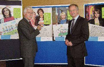 Kreisdezernent Norbert Hahn (l.) und Landesrat Hans Meyer vom Landesjugendamt Westfalen-Lippe weisen im Kreishaus auf vom 3. Mai bis 8. Juni geplante bundesweite Aktions- und Informationswochen über die Arbeit der Jugendämter hin. Ziel ist es, das vielfältige Leistungsspektrum zu präsentieren und allen Bevölkerungsgruppen nahe zu bringen. Foto: Kreis Unna